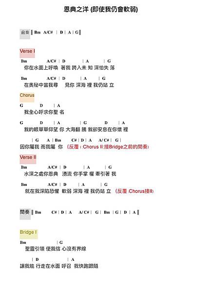 恩典之洋 (即使我仍會軟弱) / Oceans (Where Feet May Fail) 和弦+歌詞譜何老師 Una Ho 發表在 痞客邦 留言(0) 人氣(6,890)